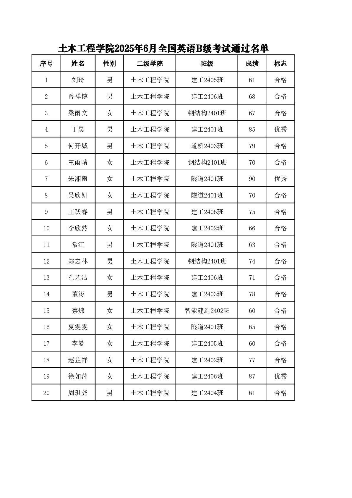 beat365在线唯一官网2025年6月全国英语B级考试通过名单