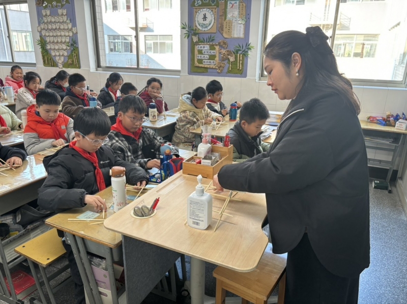 实践环节更是将活动推向了高潮。同学们面对有限的生活材料,如何搭建出一座既稳固又能承载一定重量的“筷子桥”?这无疑是一个极具挑战性的问题。然而,同学们并没有被困难吓倒,他们迅速进入思考和讨论的阶段,纷纷发挥自己的想象力和创造力,提出各种各样的想法和建议。在讨论过程中,他们不断地尝试、调整和完善自己的设计方案,展现出极强的探索精神和创新意识。