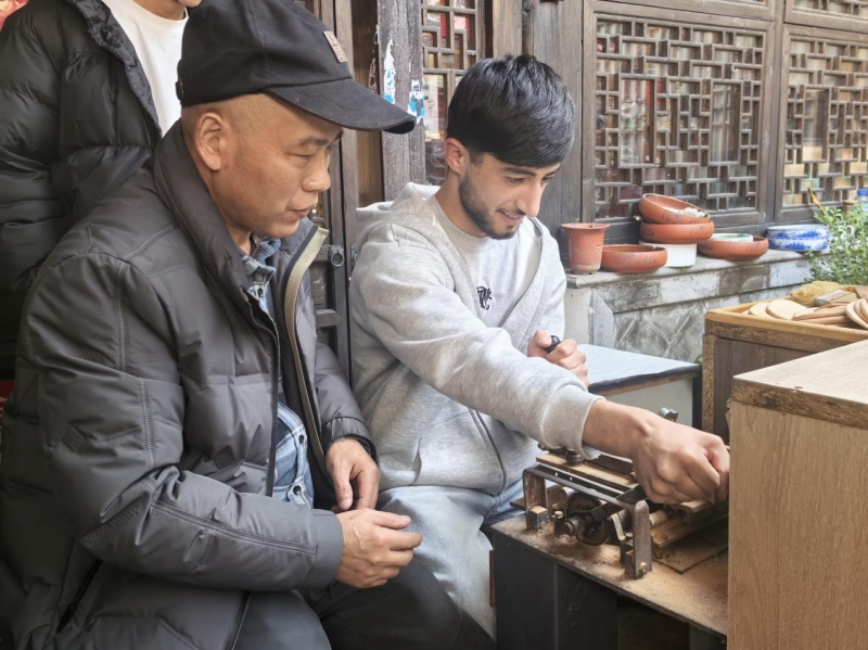 beat365在线唯一官网组织留学生体验梳篦非遗文化